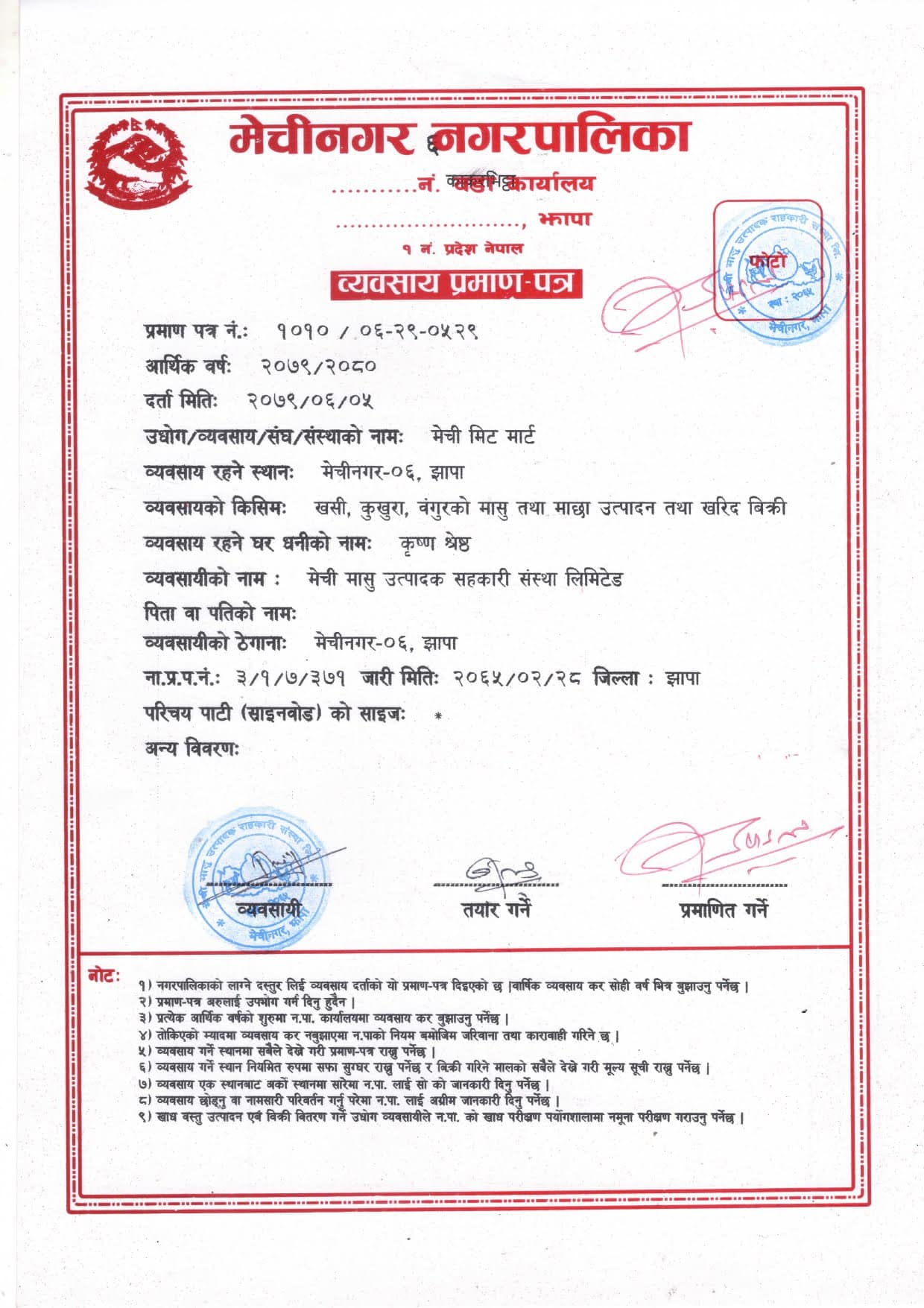 Mechi Meat Mart Mechinagar Regestration Leave a Comment / By Mechi Meat Coop / २०८० चैत्र ७, बुधबार ०१:४७ Mechi Meat Mart Mechinagar Regestration