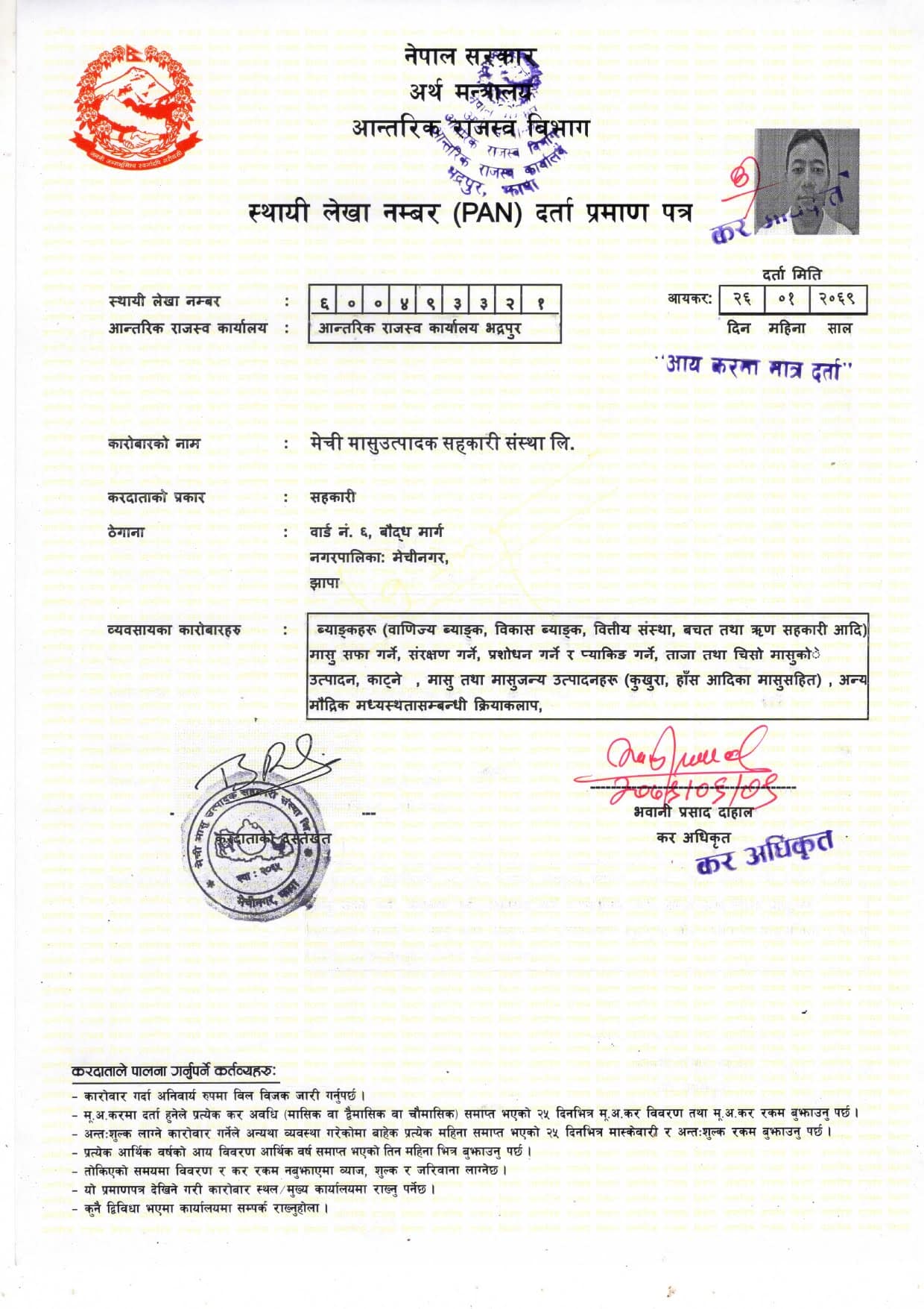 Mechi Meat Mart PAN Certificate Leave a Comment / By Mechi Meat Coop / २०८० चैत्र ७, बुधबार ०१:४७ Mechi Meat Mart PAN Certificate